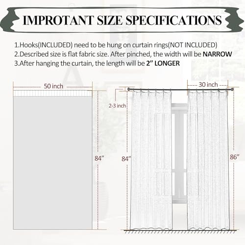 - WHAT YOU WILL GET: Each package of our farmhouse curtains contains 2 curtain panels, 2 tie-backs, and 30 stainless steel pleater tape hooks, you can diy pleats. The size of faux linen curtains after French Style pleated is around 35 inches wide x 102 inches long.