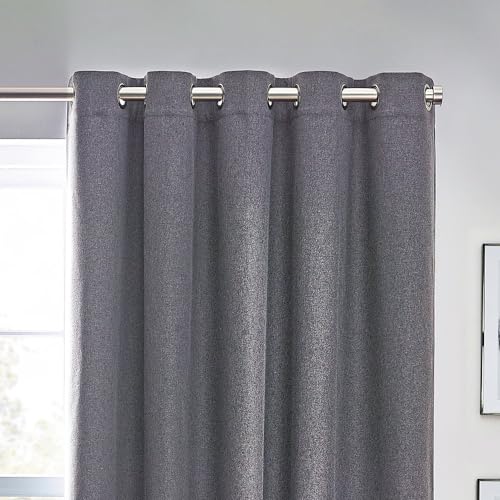 furn. Dawn Textured Blackout Eyelet Curtains – Thermal Lined Pair (Linen – Width 168 x Drop 229cm)