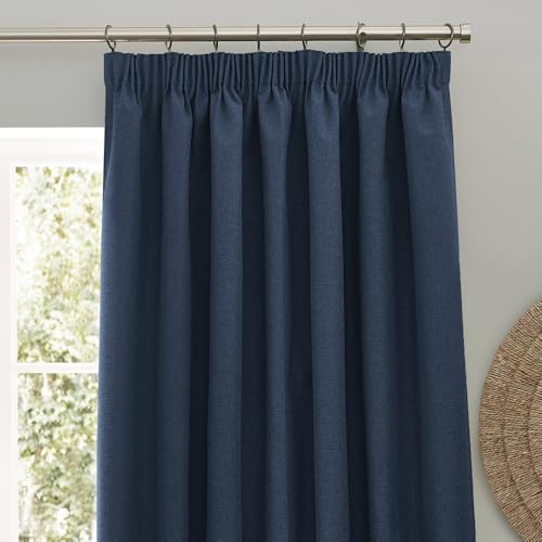 furn. Dawn Textured Blackout Pencil Pleat Curtains – Thermal Lined Pair (Blue – Width 229 x Drop 183cm)