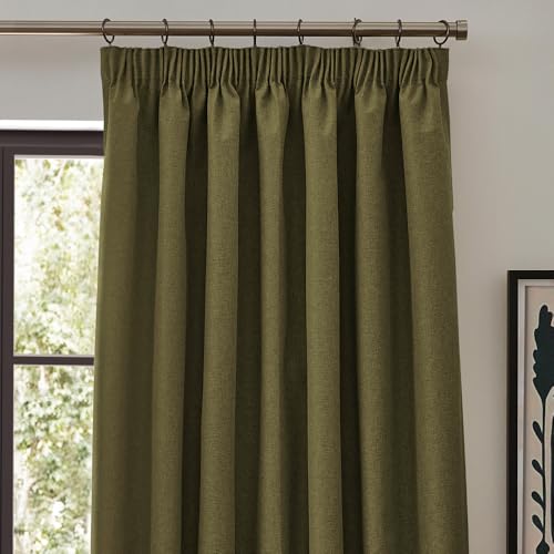 furn. Dawn Textured Blackout Pencil Pleat Curtains – Thermal Lined Pair (Green – Width 229 x Drop 137cm)