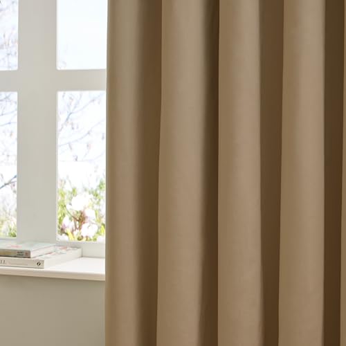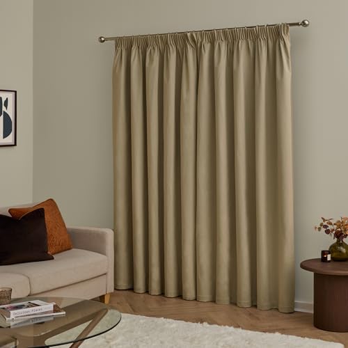 furn. The Ultimate Velvet Blackout Pencil Pleat Curtain Pair – Soft Stylish Light Blocking Thermal Matte Velvet Drapes (Mocha – 168x229cm)