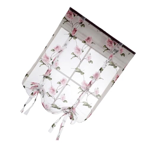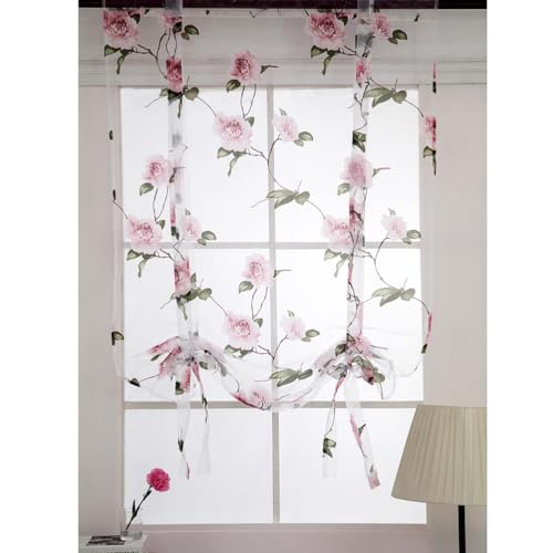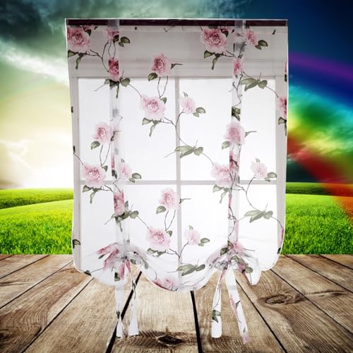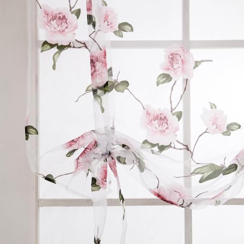 Garneck Up Curtain Floral Roman Shades Curtain Rod Pocket Sheer Voile Darkening Balloon Valance for Home Kitchen Office Windows Size 1