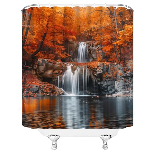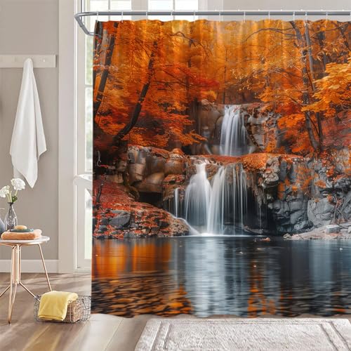 GCTNBJL Waterfall Shower Curtain Fall Forest Tree Jungle Waterfall Autumn Nature Scenery Landscape 70×70(WxH) Inches Bathroom Decor Fabric Curtain with Hooks
