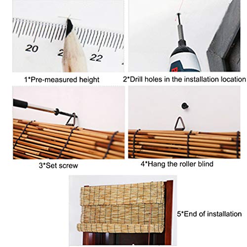 Geovne Roller Blinds Breathable,Natural Reed Curtains Dust-proof,Bamboo Roll Up Window Hand Made Bamboo Roller Shades,Suitable for Indoor and Outdoor Rolling Doors and Windows (140x180cm/55x71in)