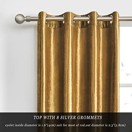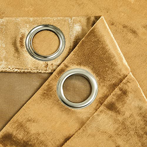 GIGIZAZA Gold Velvet Curtains 90 x 90 Inch(Width x Length),Living Room Eyelet Grommet Blackout Thermal Insulated Darkening Window Curtains Drapes for Bedroom 2 Panels