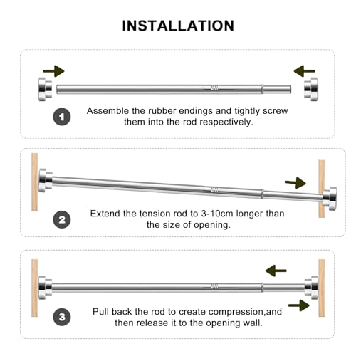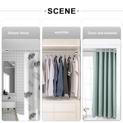 - 【Multipurpose】The minimum size of the shower curtain rod is 45cm, you can add rod to meet different scenarios. Used as shower curtain rod, curtain rod, closet rod, door curtain rod, cabinet rod, tension rod, laundry rod, and bathroom rod.