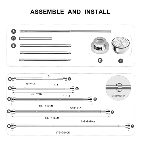 - 【Material】 Premium Stainless Steel Made, Waterproof, Anti-Rust —This telescopic shower pole is crafted from premium rust-resistant 304 stainless steel with anti-oxygen layer, built to withstand daily use and humid environments without corrosion, and ensures heavy-duty durability.