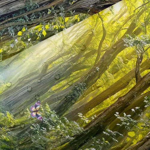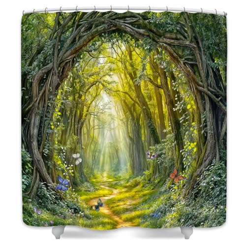 Green Tree Shower Curtain, Nature Forest Garden Shower Curtain, Outdoors Scene Shower Curtains for Bathroom, Enchanted Forest Scenic Bathroom Decor Sets with Hooks,72X72