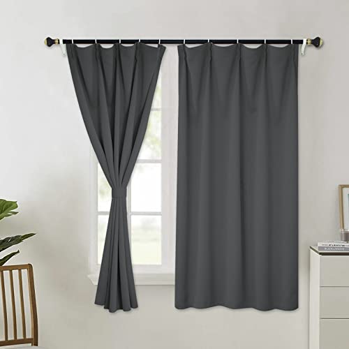 Grewod Curtains for Living Room Blackout Grey Solid Color Thermal Insulated Window Curtain, 40 x 53 Inch, 2 Panels, Pinch Pleat, Polyester