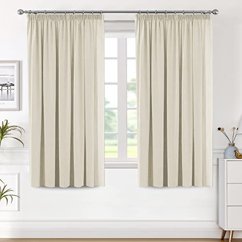 H.Versailtex Blackout Curtains Super Soft Window Treatment Thermal Insulated Pleat Blackout Curtains for Living Room/Bedroom, 46" Width x 54" Drop, 2 Panels, Beige (with Two Matching Tiebacks)
