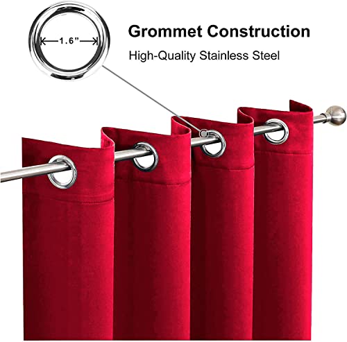 Hachette Thermal Blackout Curtains Eyelet Ring Top Including Pair of Tiebacks (Red, 90" X 90")