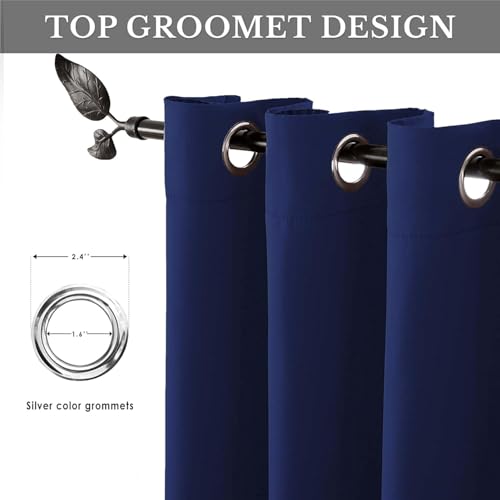 Hafaa Blackout Curtains Eyelet Navy 66×84 Inch Curtains for Kidsroom Soft Texture Thermal Insulated Living Room Curtain 2 Panels with Tie Backs