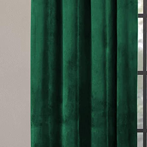 Hafaa Emerald Green Blackout Curtain for Bedroom – 66" wide x 84 inch drop Super Soft Crushed Velvet Curtains for Living Room – 1 Panel Eyelet Curtain with Matching Tie Back (168cm x 213cm)