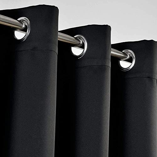 Hafaa Eyelet Blackout Door Curtain 66 x 84 Inch Drop – Ring Top Thermal Insulated Soft Curtains for Living Room single Panel – Black