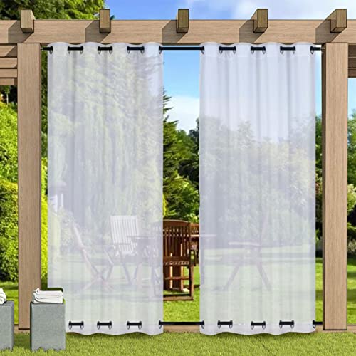 Heavyoff Outdoor Curtain for Patio, White Linen Look Semi-Sheer Curtains Waterproof Gazebo Curtains Top & Bottom Grommet for Pergola Balcony Pool Indoor 1 Panel, W100 x L84