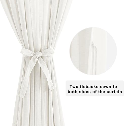 Hiasan Ivory Faux Linen Pinch Pleat Curtains 96 Inches Long for Living Room, Semi Sheer Light Filterting Window Curtain Drapes with Tieback and Hooks (2 Panels, 52" W x 96" L)