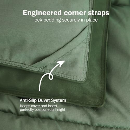 HIG 3 Pieces Green Coverless Duvet King – 240 x 220cm – Cassette Box Construction – Corner Duvet Tabs – Solid Reversible 10.5 Tog Comforter with 2 Shams – 100% Down Alternative & Breathable Bedding