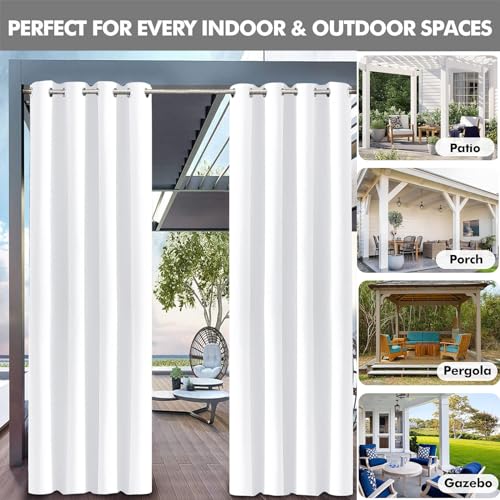 - Outdoor Curtains with Multiple Function – waterproof garden curtains is not only provide you with protection from direct sunlight and insect damage, but also keep the light and rain out and the house cool in the hot summer months and the cold out in the winter. Outdoor blackout curtains waterproof with light shades and noise reduction to protect privacy and not interfere with sleep. The high density weavon fabric protect your outdoor furniture from direct exposure to sunlight.