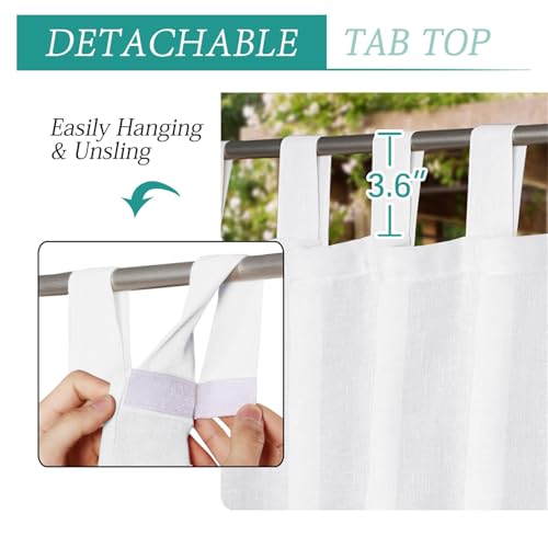 Hiseng Outdoor Curtains Waterproof for Patio, 2 Panels Sheer Outdoor Curtains Semi Voile Sheer Curtains Cotton Linen Transparent Pergola Curtains for Garden, Gazebo, Cabana (White,132x244cm)