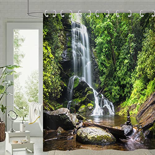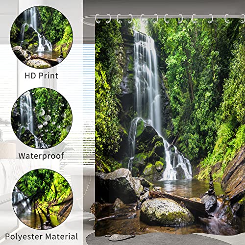 Hnmdmyi Forest Shower Curtain 240×180, Tropical Jungle Rainforest Green Tree Plant Nature Landscape Waterfall Scenery Bathroom Curtains Waterproof Polyester Fabric Washable Bath Curtains with Hooks