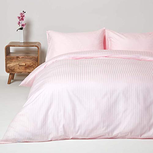 HOMESCAPES Pink Pure Egyptian Cotton Duvet Cover Set Double 330 TC 500 Thread Count Equivalent Satin Stripe Quilt Cover 2 Pillowcases Included Bedding Set