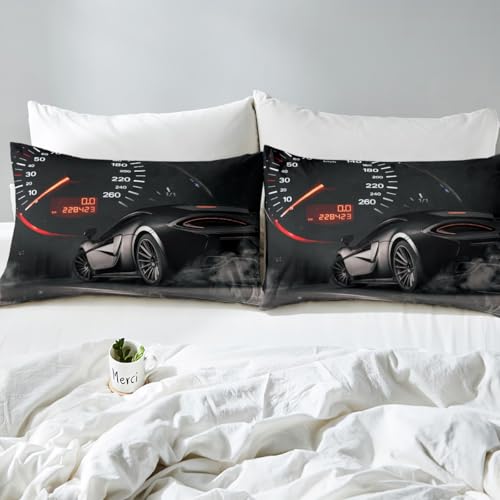 Homewish Black Racing Car Bedding Boys Single Duvet Cover Set Kids Race Car Quilt Cover, 3D Printed Microfibre Bedding & Linen Cool Extreme Sports Comforter Cover With 1 Pillowcase