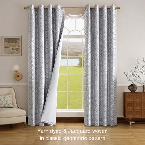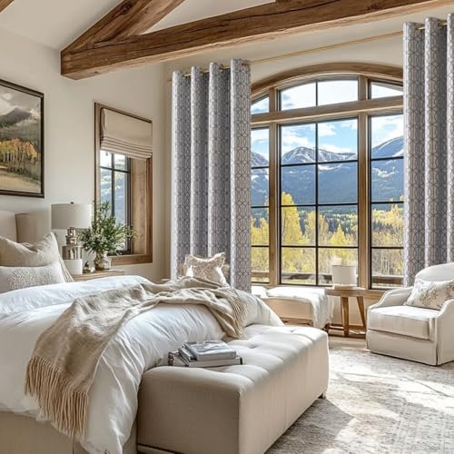 Thermal Insulated Curtains with Noise Reduction, Heavyweight Jacquard Woven Grey Curtain for Bedroom,Living Room