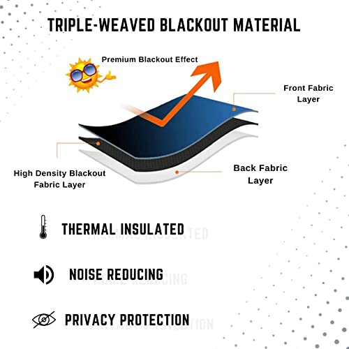 - Great Effect – Our room darkening curtains feature triple weave technology that blocks 90%-95% of light and UV rays. Both front and back layers are made of good quality polyester fabric, making the curtains comfortable to the touch. Thermal insulation can help you save energy by keeping heat in winter and blocking heat from outside in summer. Plus, it can reduce noise from the outdoor and provide maximum privacy protection