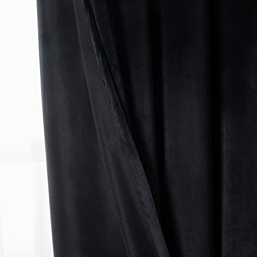 Imperial Rooms Crushed Velvet Curtains for Living Room Ring Top Black Curtains 66×72 Fully Lined Soft Blackout Bedroom Curtain Eyelet with 2 Matching Tie Backs (168cm x 183cm)