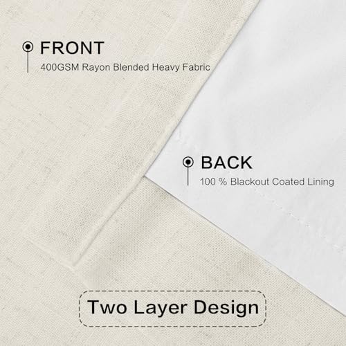 • Full Blackout Linen Curtains – Our elegant textured linen curtains have white lining on backing, can block out sunlight,uv rays effectively and provide thermal insulation,noise reduction,and providing complete darkness and privacy in a room, which you can enjoy your sweet sleeping anytime