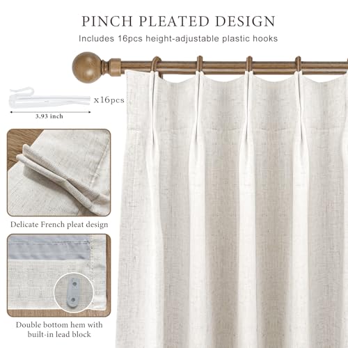 IVAPUPU Natural Thick Linen Blend Pinch Pleated Blackout Curtains for Bedroom – Black Out Curtains 72 Inch 2 Panels for Living Room Darkening Thermal Insulated Window Curtain Drapes with 16pc Hooks