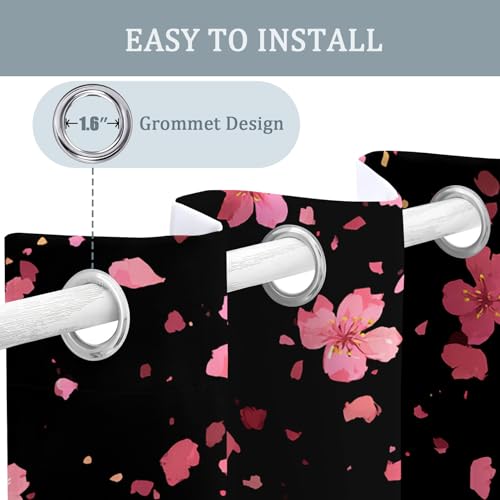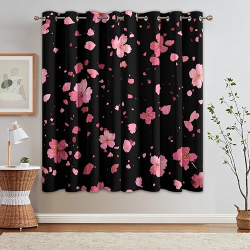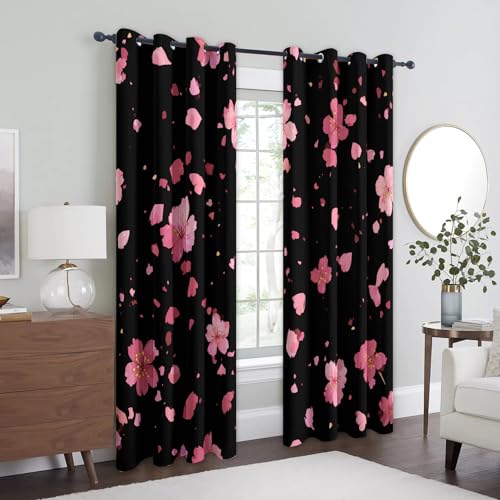 Japanese Pink Floral Curtains Blackout, 52×84 Inch 2 Panels – Dark Romantic Flower Pattern Black Out Curtains, Home Decor, 84 Drop Eyelet Window Drapes for Bedroom, Living Room FO140