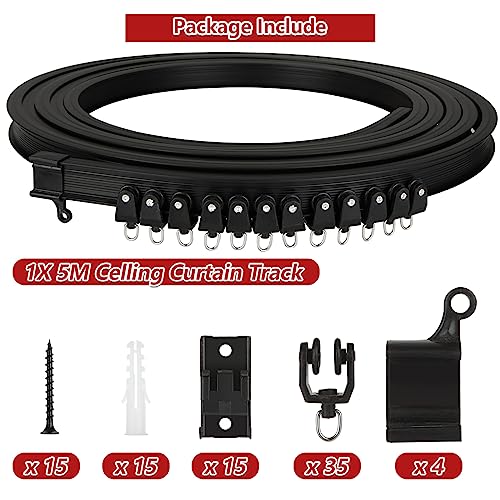 - šćPACKAGE INCLUDEćThe package include 1 pcs 5m/16.4ft bendable ceiling curtain track, 35 pcs curtain hooks, 35 pcs rollers, 4 pcs end cap seals, 15 pcs top mounting yards, 15 pcs expansion tubes and 15 pcs screws, this kit meets your installation needs.