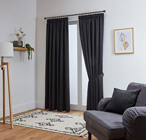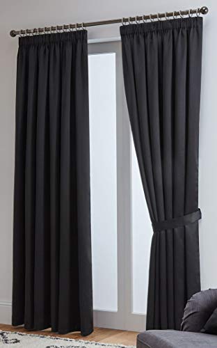John Aird Blackout Curtains Pencil Pleat with Tie Backs (Black, W 90" x L 90" (2 Panels) Thermal Energy Saving Curtains for Bedroom & Living Room