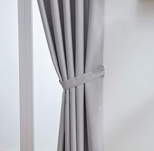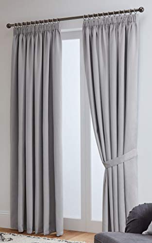 John Aird Blackout Curtains Pencil Pleat with Tie Backs (Silver, W 90" x L 54" (2 Panels) Thermal Energy Saving Curtains for Bedroom & Living Room