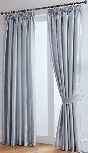 John Aird Luxury Faux Silk Fully Lined Pencil Pleat Curtains With Matching Tie Backs (Silver, 168cm Width x 183cm Drop (66"x72")