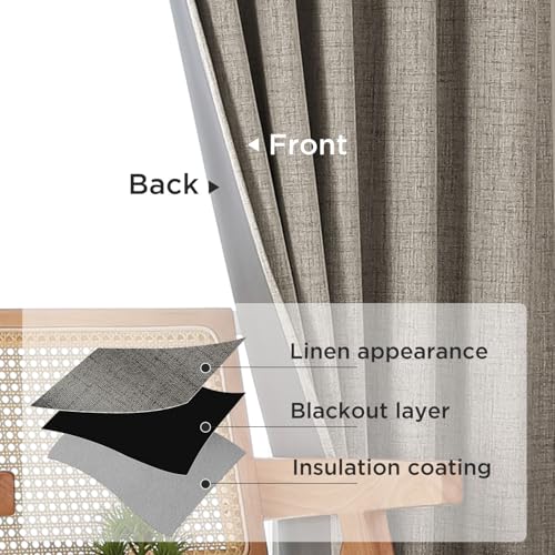 - 100% BLACKOUT: These magic solid curtain panels are sewn with linen appearance polyster, a blackout layer and an insulation coating, could entirely block out sunlight and harmful UV rays in summer and prevent the indoor heat from escaping during winter, which is able to save more on your energy bills.