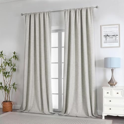 Joydeco Blackout Thermal Lined Curtains 66×90 Inch Drop 2 Panels with Back Tabs & Rod Pocket, 100% Light Blocking Linen Texture Fabric Curtain Drapes for Living Room Bedroom
