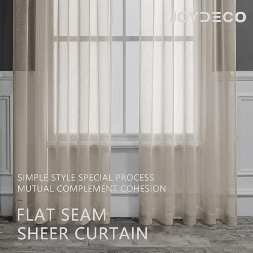 Joydeco Net Curtains for Windows 84 Inch Drop – 2 Panels, Woven Eyelet Voile Sheer Curtains for Living Room Bedroom, Decorative Semi Transparent Long Window Treatment, 52×84 Inch, Beige