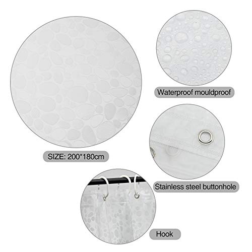 JTOOYS Pebble Shower Curtain, 3D Waterproof PVC, Mildew Proof, 180*200cm