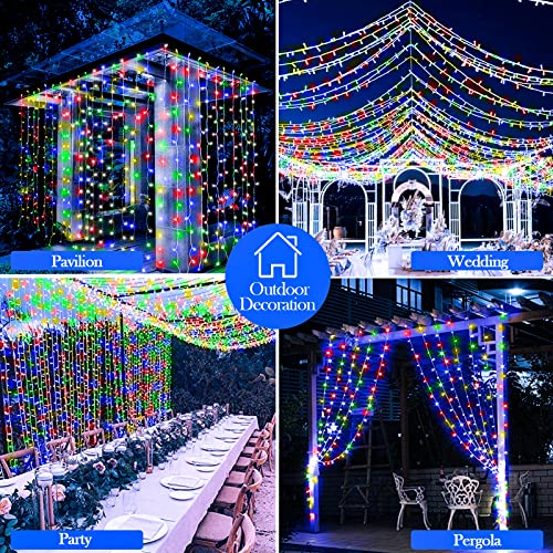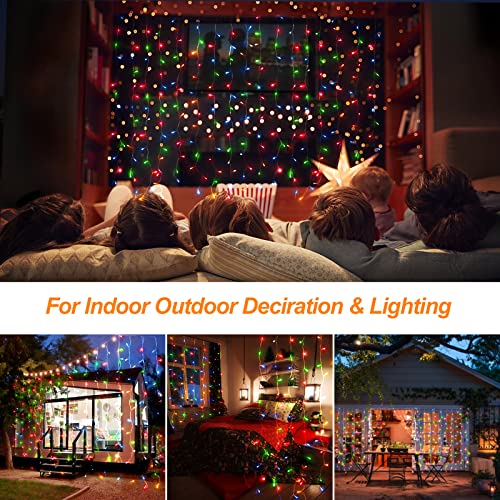 JXLEDAYY Curtain Fairy Lights Outdoor Waterproof 2Mx2M 200 LED String Lights Plug in Window Lights USB Remote Timer 8 Modes for Indoor Bedroom Wall Wedding Party Christmas Decoration-Multicoloured