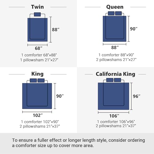 • 4 SIZES AVAILABLE – TWIN/SINGLE + 1 Standard Sham (68×88"+21×27"x1); FULL/QUEEN + 2 Standard Shams (88×90"+21×27"x2); KING + 2 King Size Shams (102×90"+21×37"x2); CAL King(96×106") + 2 King Size Shams.