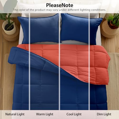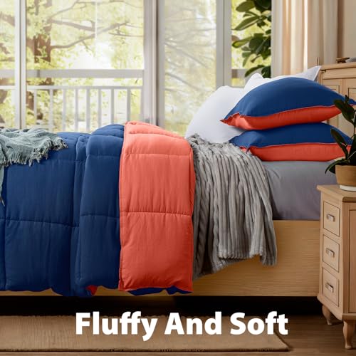 KASENTEX All Season Down Alternative California King Comforter Set with Shams – Bed Comforter Reversible Fluffy Soft Duvet Insert Hypoallergenic Bedding Machine Washable, Cali King, Navy Blue / Coral