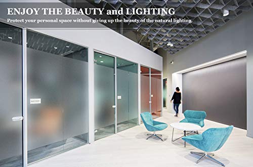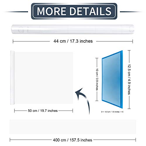 - PACKAGE INCLUDES: One Roll 44.5 x 400 cm / 1.46 x 13.12ft Privacy Frosted Opaque Window Film and One 12.5 x 5 cm / 0.41 x 0.16ft Blue Scraper, enough long to decorate your living room or office window, protect your privacy well.