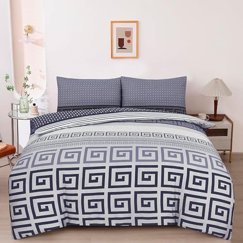 KNIGHTS BRIDGE Luxury 4 Piece Egyptian Cotton Bedding Set – Duvet Cover, Fitted Sheet & 2 Pillowcases – Hotel Quality – Geometric/Greek/Damask Patterns – Machine Washable (Double, Greek Grey)