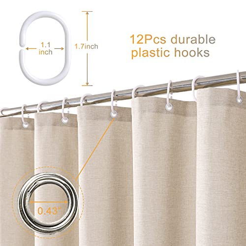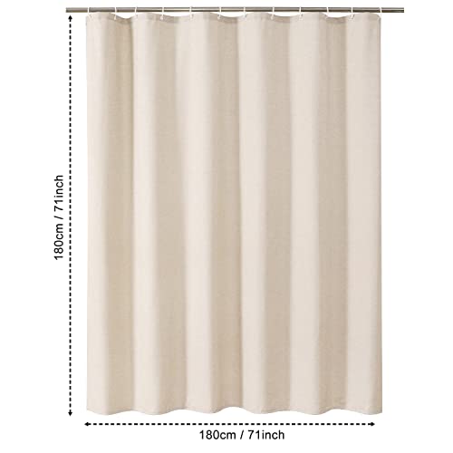 Krismile Shower Curtain Waterproof Anti Mould Resistant- Linen Textured Decorative Bathroom Shower Curtains with 12 Hooks 180x180cm, Beige/Cream
