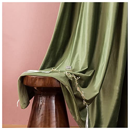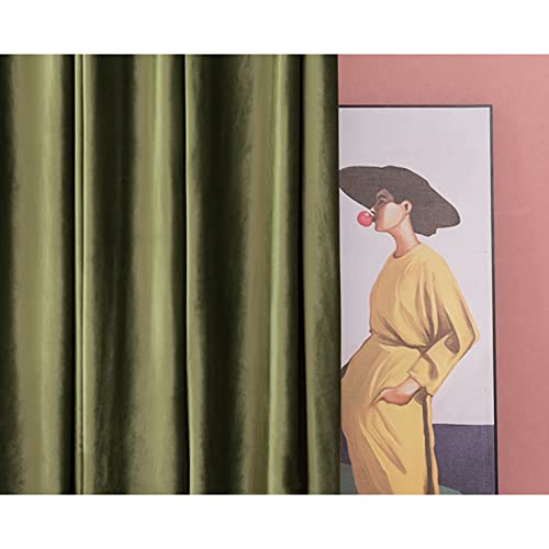 KSTORE 2 Panels Blackout Curtains Olive Green Velvet Curtain Solid Color Eyelets/Pencil Pleat Opaque Curtains for Bedroom Living Room,Eyelet,W200xL270cm