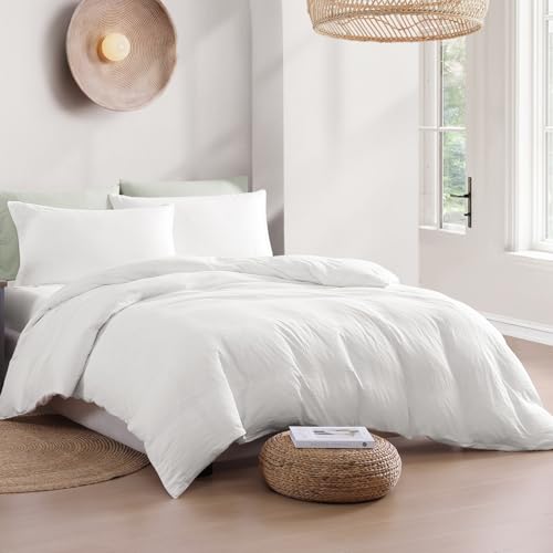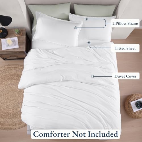 LANE LINEN 4-Piece Double Bedding Set – Pre-Washed Microfiber Duvet Cover, Fitted Sheet, and Pillowcase – Cozy and Durable (White)
