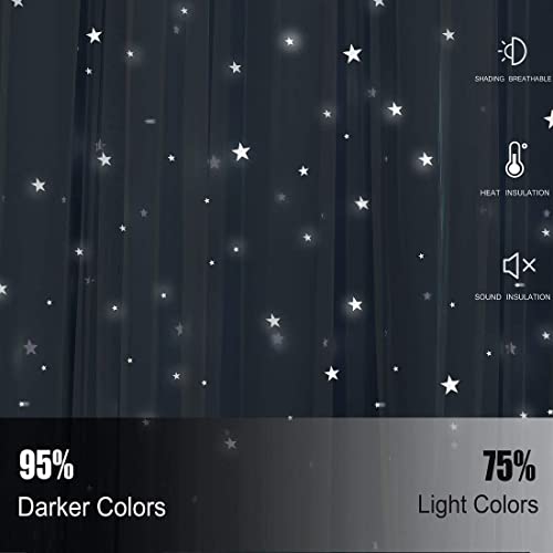• 【UNIQUE DESIGN】These curtains have a unique design,with two layers that include star-shaped cut-outs in the inner layer and a tulle lace outer layer.Using high-tech hollow technology,the edges and corners are impeccably cut,leaving the star shape clear and intact. When sunlight shines through,the stars emit a luminous glow,creating a mesmerizing,dream-like starry sky effect visible through the screen.