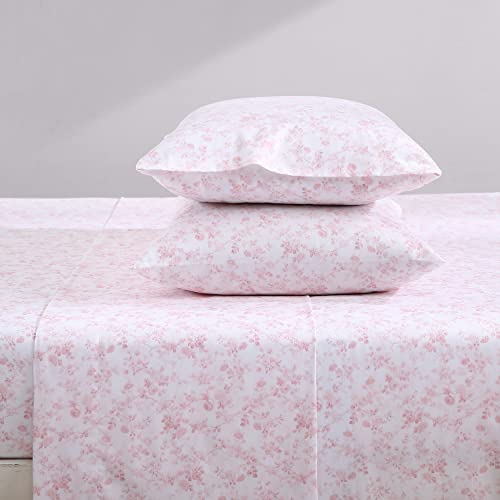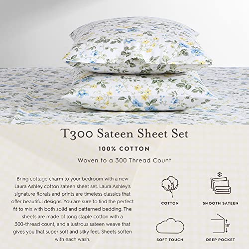 Laura Ashley Home King Sheet Set, Soft Sateen Cotton Bedding Set – Sleek, Smooth, & Breathable